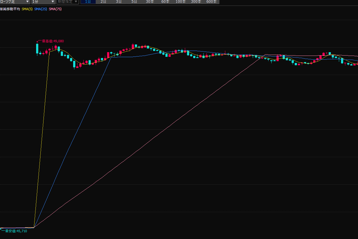 つまり注文を取り消さなければ、無鉄砲に成行注文して高値掴みしていた可能性。取引再開のところが最高値って書いてるので、これがいわゆる寄り天ですよね!?