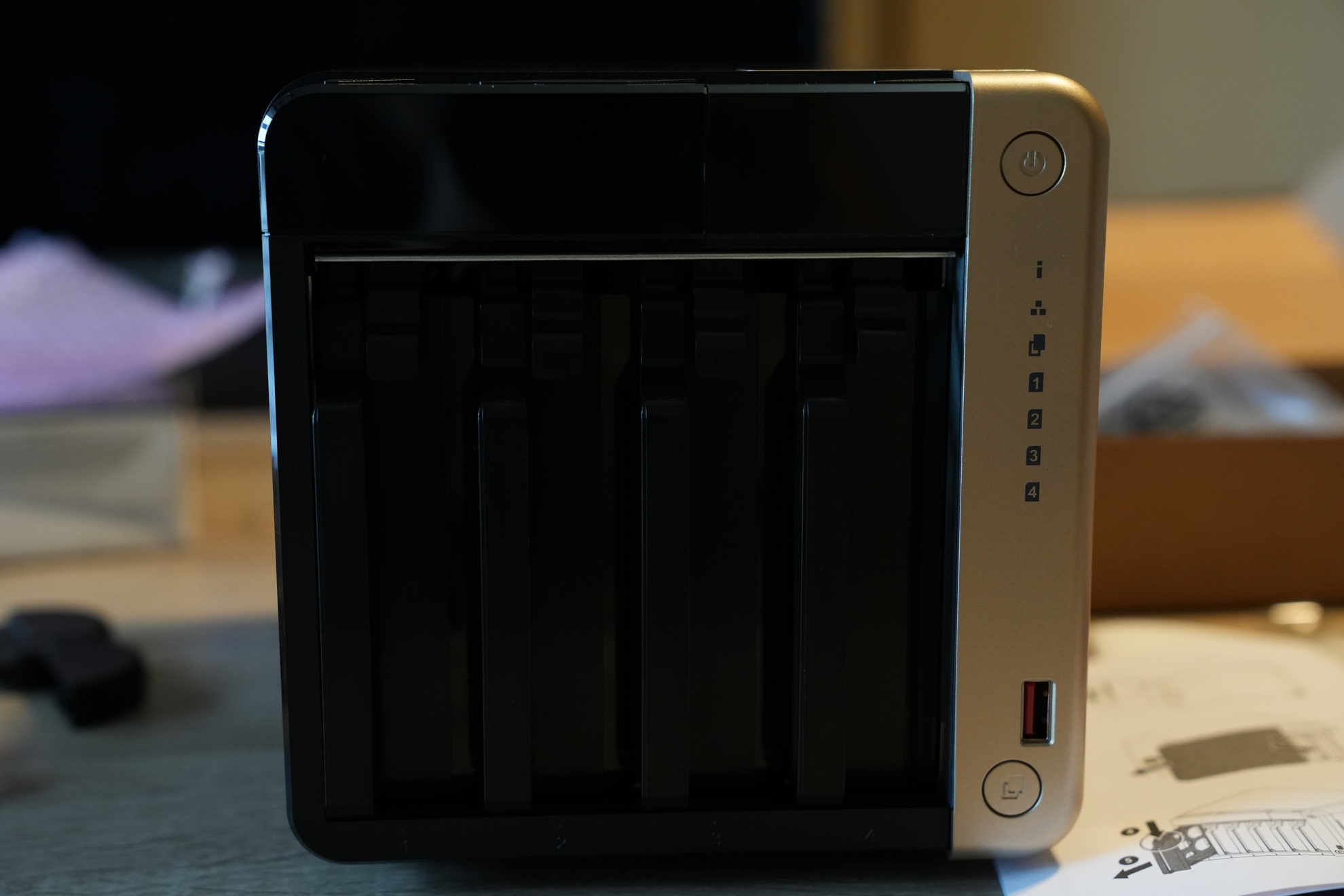 「せっかく買うんやったらええもの買わなもったいない。安物買いの銭失いは嫌や!」という母の後押しもありまして、NASの中でも性能がそれなりに良さそうなものをチョイスしました。4ベイ(4つのディスクを入れられる)。メモリーも8GB、2.5GbE対応、拡張カードも増設可という、特段性能に不満なさそうです。