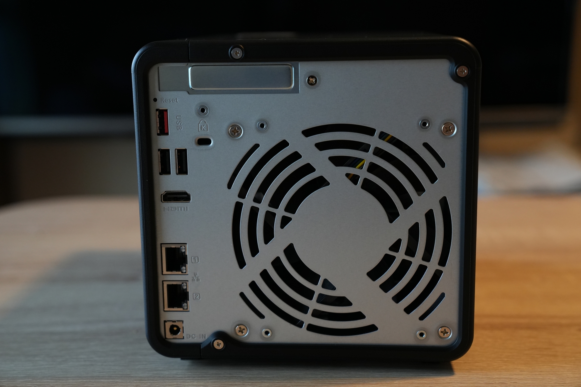 背面は思ったよりも端子が多い ©Toshishige Maemki背面は端子類がたくさんついています。前面にもありますが、USB3.2Gen.2Type-Aの端子がひとつ。USB2.0が2つ。HDMIもついており、映像出力すれば簡単なブラウジングも出来たりします。2.5GbE LANポート2つ。電源アダプターを接続する入力。