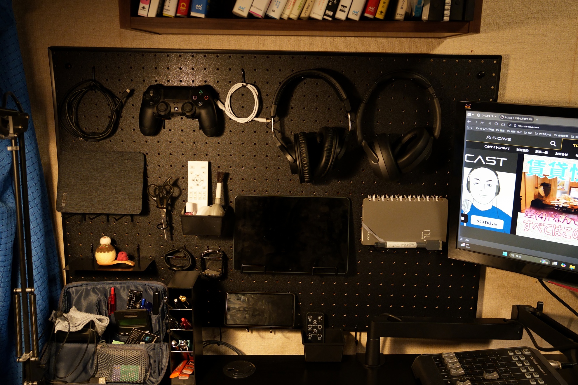 ただ以前から物が増えてきたため、デスクの上がごちゃついた状態になりやすくなっていました。そこで有孔ボードを購入して、デスク周辺の収納力をアップさせよう!というのが今回のお話です。